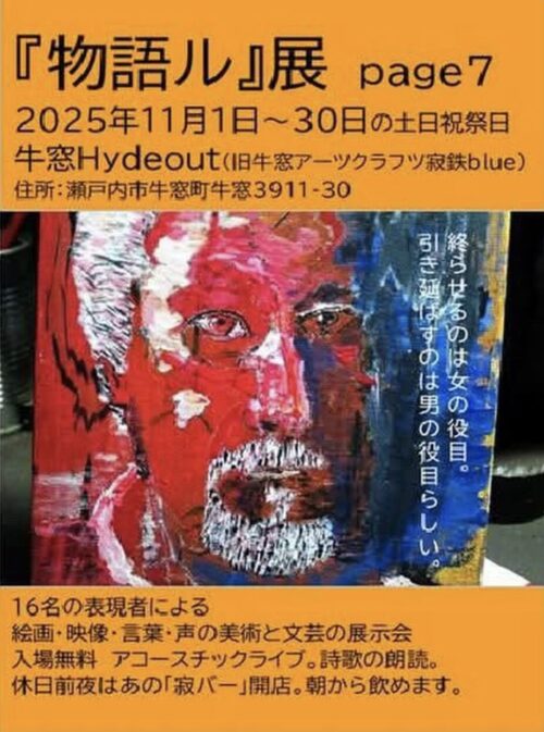 | 会場 | 牛窓Hydeout(旧牛窓アーツクラフツ寂鉄blue) 〒701-4302岡山県瀬戸内市牛窓町牛窓3911−30 |