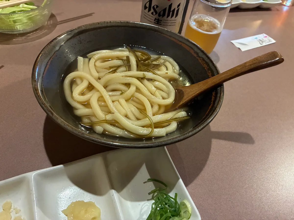 - 朝まで営業している船内のフードコート。香川名物のうどんも食べられます。