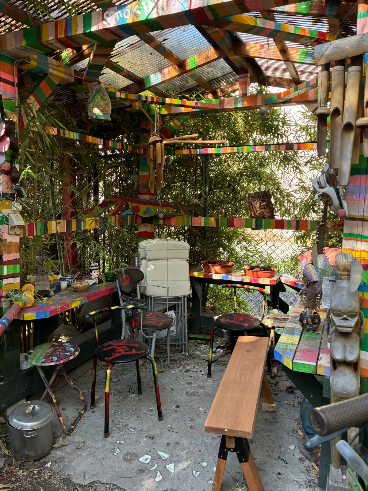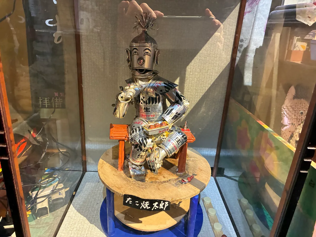 部屋の至る所にアート作品があり、特に「空き缶で作られた作品」は必見。