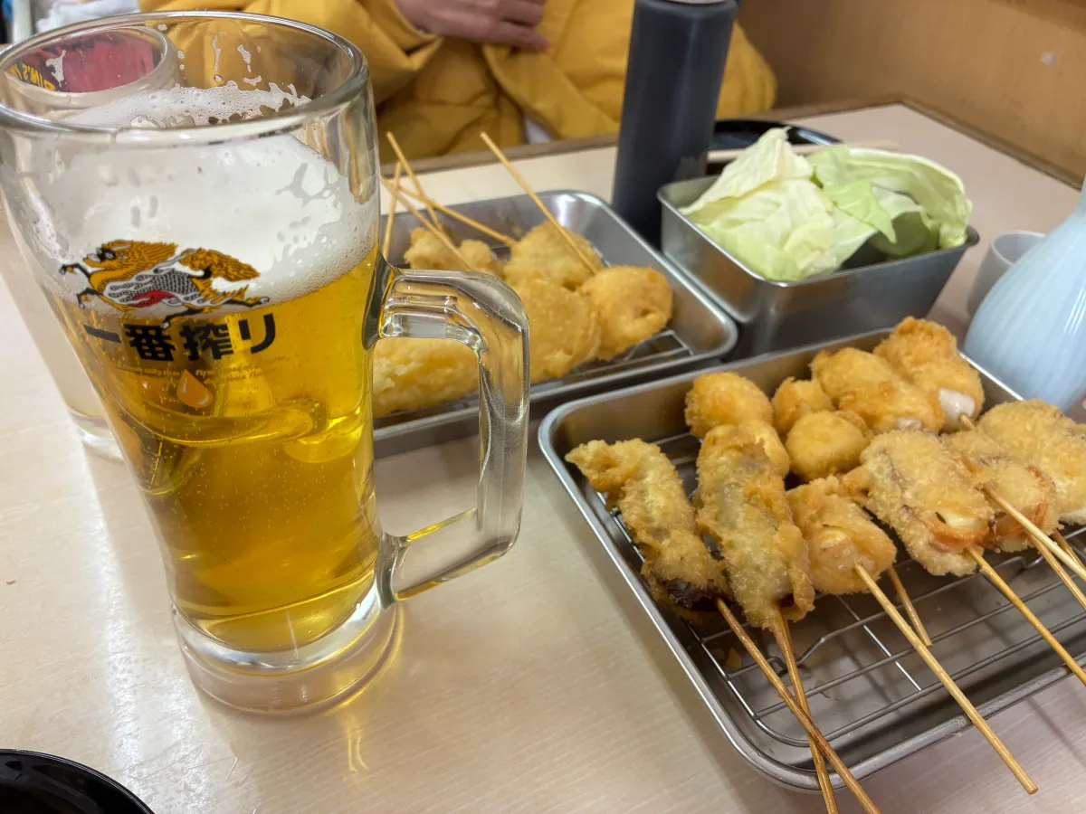 通天閣のすぐそば。驚きの「ビール2杯飲むと3杯目が無料」というサービスがあります!